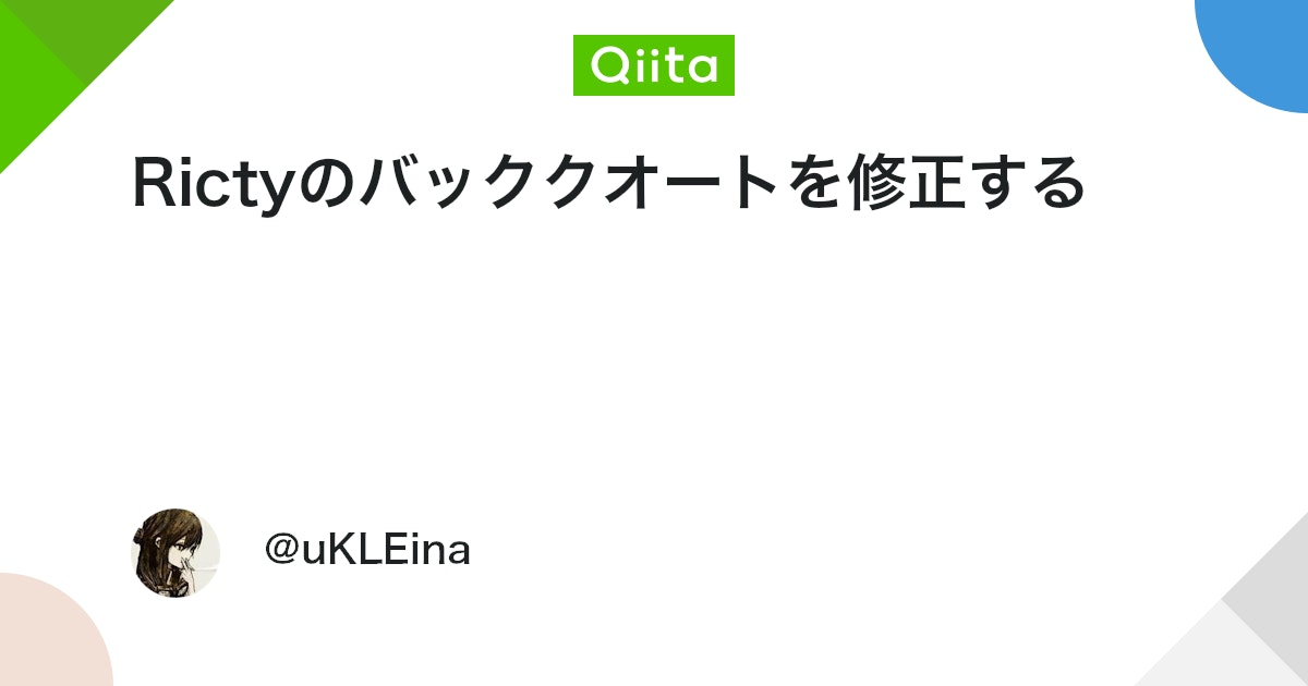 Rictyはライセンスの関係上、使用に際してフォントを手元で合成する必要がありますが、2018年6月26日現在、合成後のフォントに不具合があり、バッククオート(`←これ)が後続の文字に重なって表示されてしまいます。 FontForgeを使う...